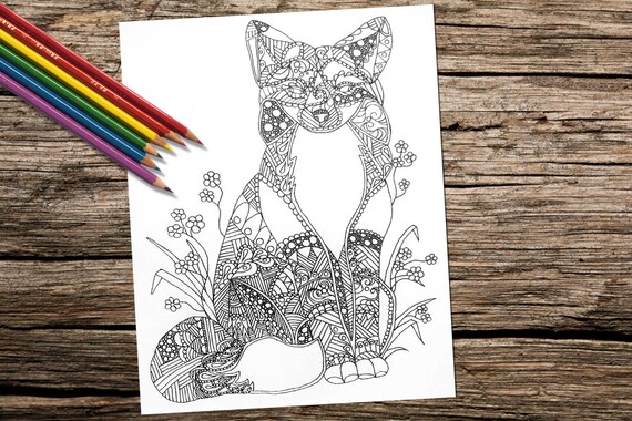 Fox Animal Coloring Book Page Adult Coloring Book Coloring Etsy