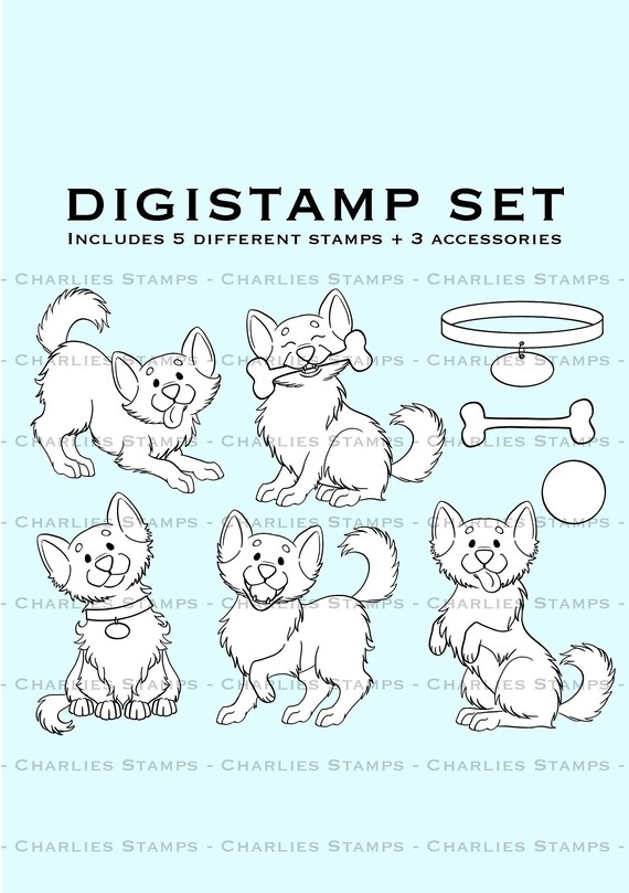 Adorable Dog Digistamp Set Instant Download Printable Stamps Etsy